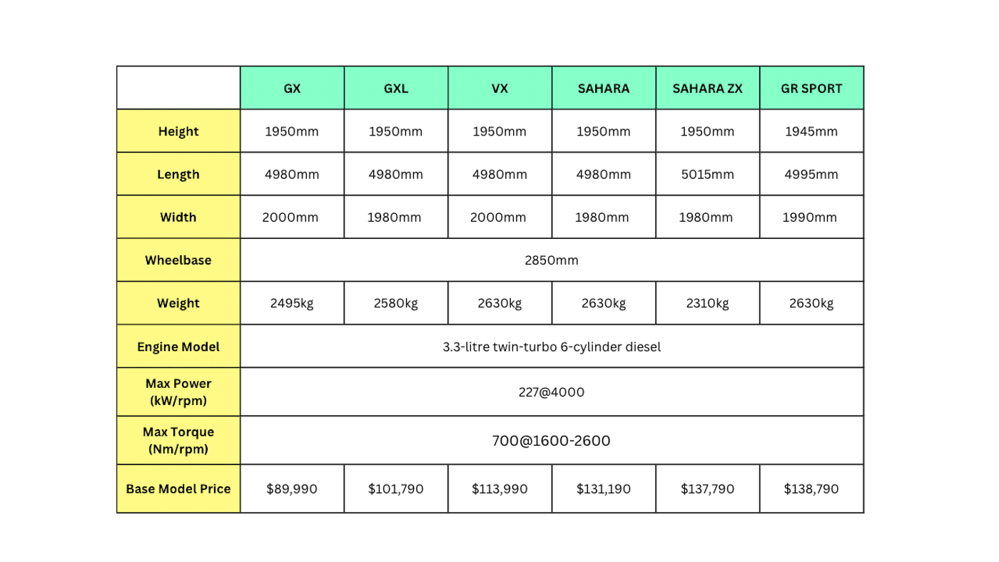 The 300 Series LandCruiser is made up of six vehicles in total. We’ve got the GX, GXL, VX, Sahara, GR Sport, and Sahara ZX. Naturally, the prices of these models differ. Here’s what you need to know: