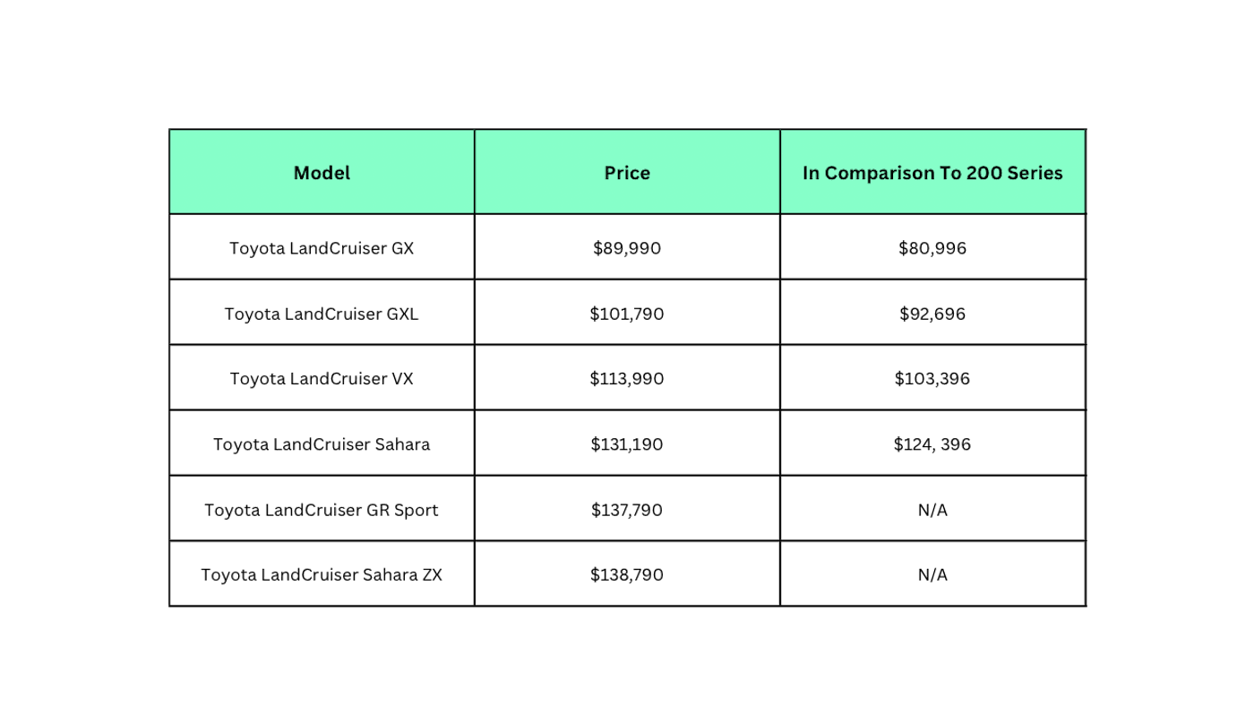What is the cost of the 300 Series Landcruiser?