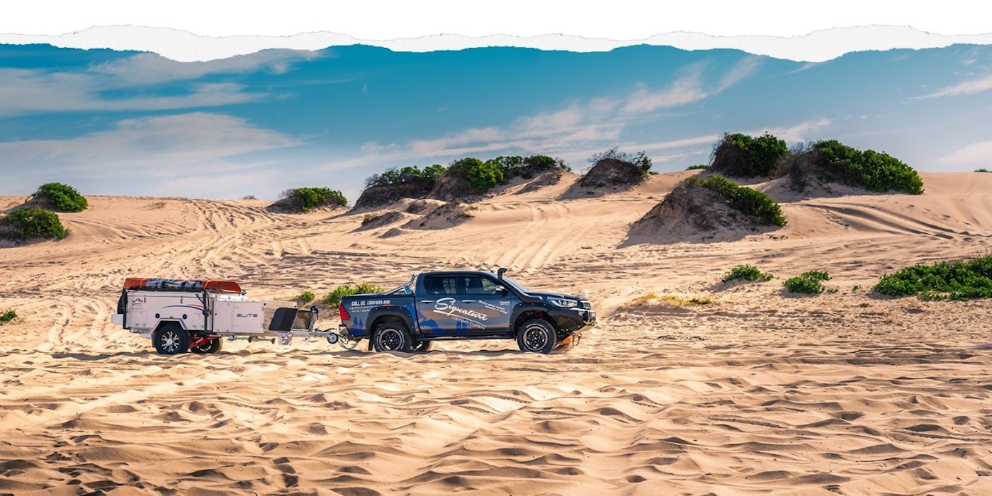 The Signature Campers Elite X is a more distinct forward folding camper trailer on the market. The independent suspension was developed in Australia while the model itself is produced elsewhere, but that’s not what we really want to talk about. For starters, the Signature Campers Elite X has storage, good storage, we might add. That’s not common in forward folding camper trailers.