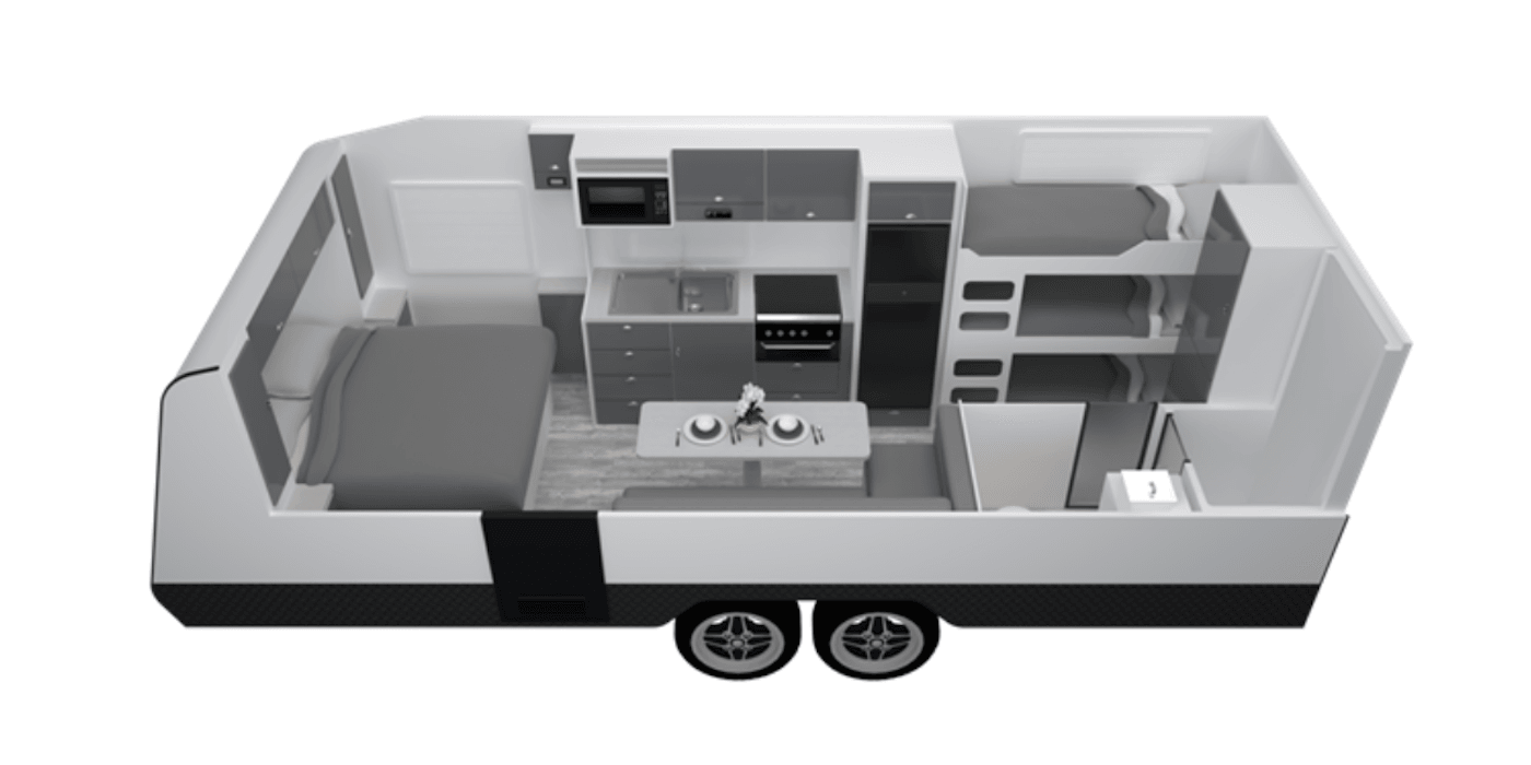The Franklin Caravans Core 215 Range measures at 20′, making it a lightweight and extremely versatile option for travel.