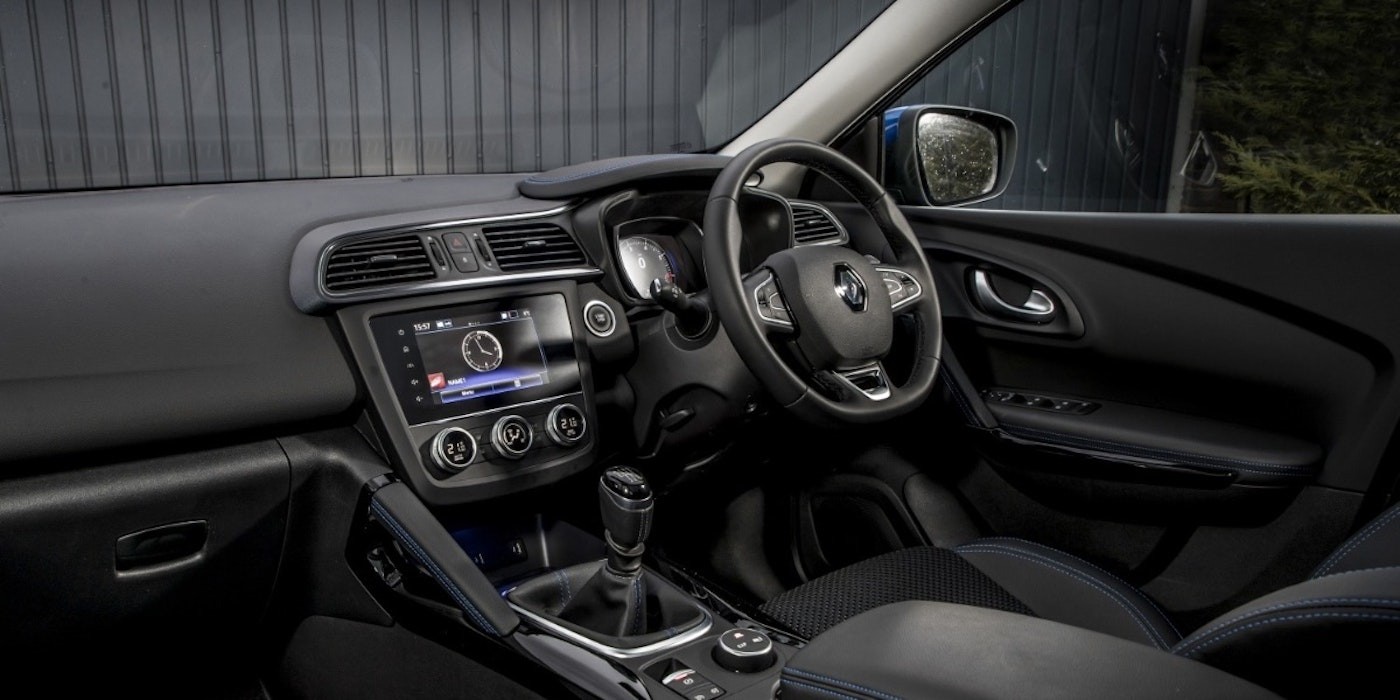 The Renault Kadjar includes safety features such as blind-spot monitoring, lane-departure warning, and front and rear fog lights to enhance driver and passenger safety.