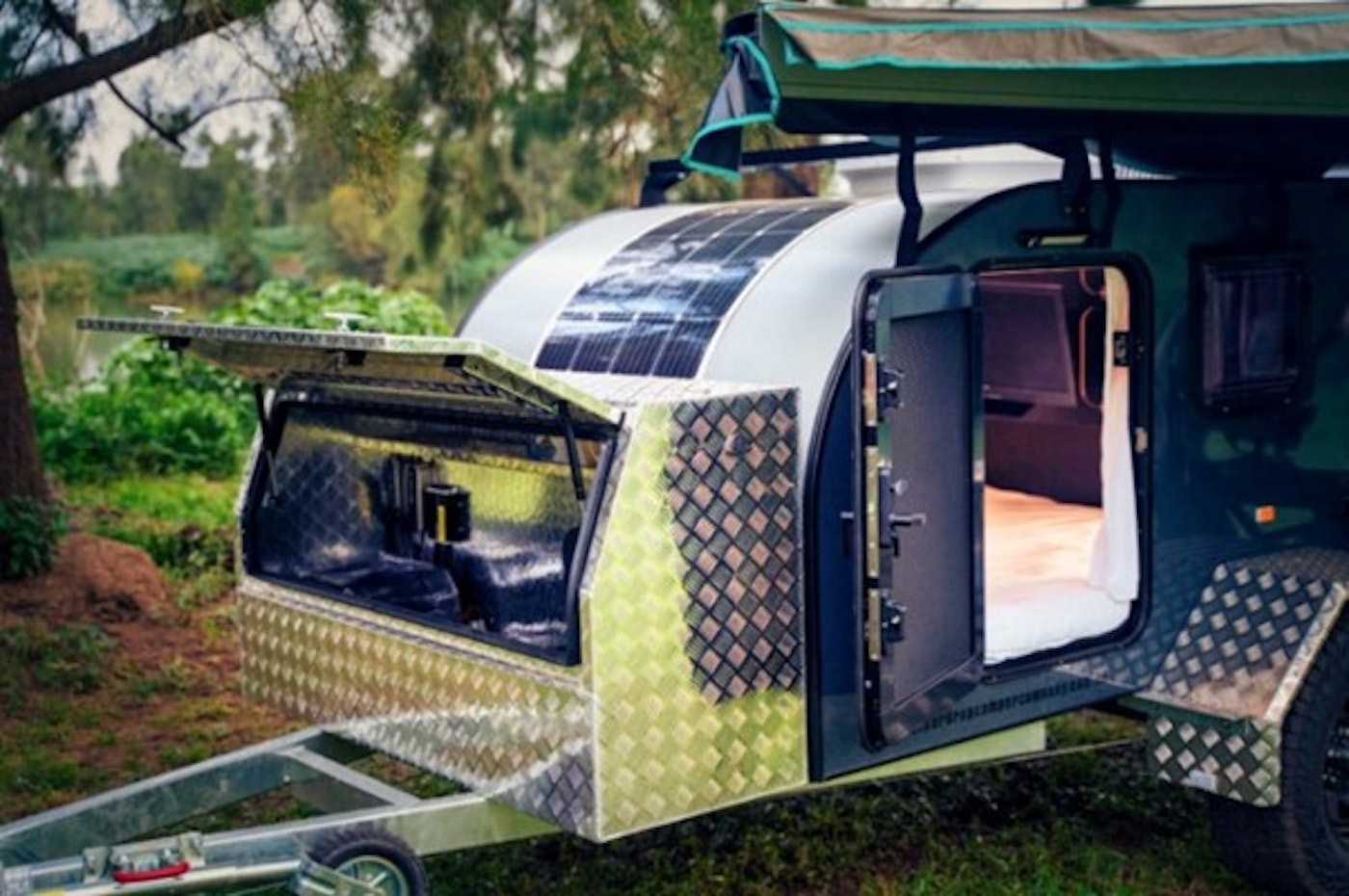 Perfect for couples or solo travellers, the Odyssey by AOR features a full off-road chassis and suspension, allowing your Odyssey to take you anywhere! You will revel in comfort with a host of features and amenities such as a stainless steel sink, hot/cold mixer taps, fridge accessible from in and outside the trailer, 3 burner gas stove and much more. The Odyssey offers both Day Mode and Night Mode settings to maximize comfort, providing you with enormous inside space that increases air ventilation during the day and spacious room for inside dining at night. With the convenience of an external lift-up shower pod with hot/cold showers, the Odyssey offers the height of luxury whilst camping off the beaten path.